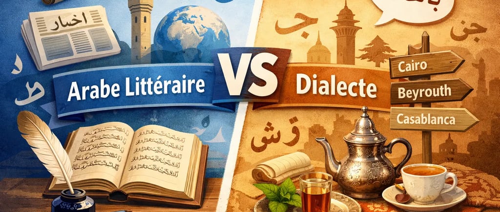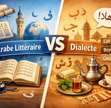 Comprenez rapidement la différence entre arabe littéraire et dialecte : usages, compréhension et choix selon vos objectifs.