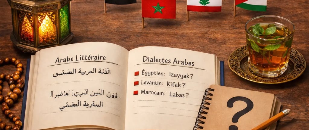 Vous débutez en arabe et hésitez entre dialecte et arabe littéraire ? Découvrez quel arabe apprendre en premier (égyptien, levantin, darija) selon vos objectifs et progressez plus facilement.